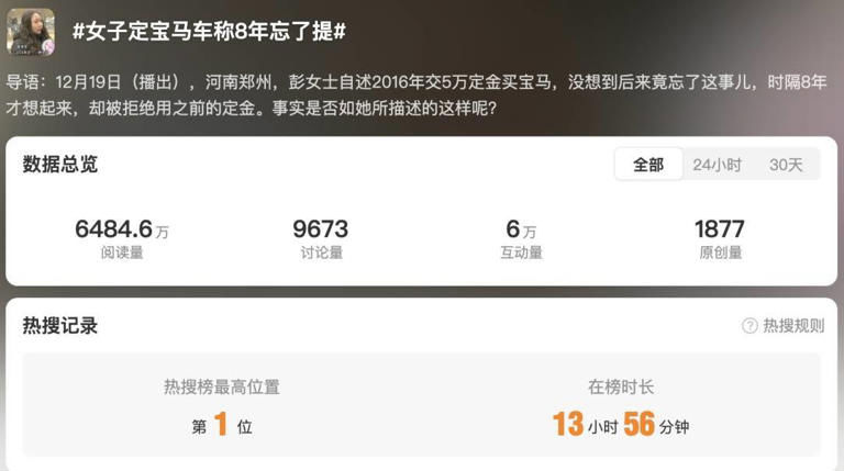 但值得注意的是,店方也提出了一个附加条件:定金只能由当初交钱的本人使用。这意味着,如果彭女士想要在这两周内提车,她必须亲自前来办理相关手续。